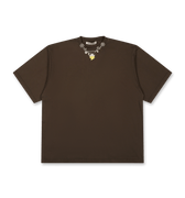 The Ottolinger Oversized Charm T-Shirt is a stylish staple crafted from 100% organic cotton, featuring a soft cedar brown jersey fabric. Its oversized fit, complemented by a ribbed crew neck, offers a comfortable yet fashionable look. The unique charm detail adds a subtle touch of intrigue, elevating the overall design. Ideal for fashion-forward individuals, this T-shirt effortlessly blends comfort with a modern aesthetic, making it an essential addition to any contemporary wardrobe.