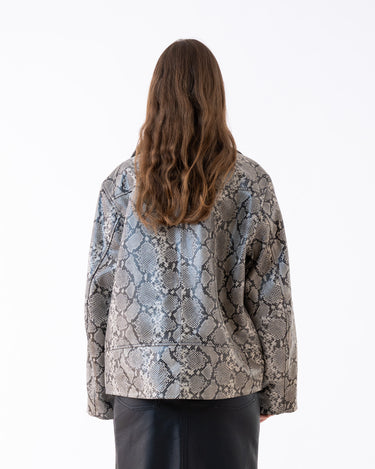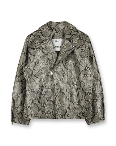 The Won Hundred Peyton Reptile jacket redefines classic biker style with a modern twist. Crafted from premium lamb leather, its bold reptile print makes a striking statement. The oversized fit adds a contemporary edge, while the luxurious material ensures a soft, comfortable feel. Designed for those who appreciate high-fashion aesthetics, this jacket offers versatility in styling—perfect for elevating any outfit. For a more tailored look, consider sizing down.