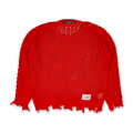 The **Unisex Damaged Boatneck Sweater** from **Andersson Bell** is a bold fashion statement. Crafted from a blend of 65% cotton and 35% nylon, it features an open-knit pattern with ribbed boatneck, hem, and cuffs. The distressed sheer knitting effect adds an edge to the design, while the logo patch subtly brands the piece. This sweater effortlessly combines contemporary style with a unique texture, making it a versatile addition to any wardrobe.