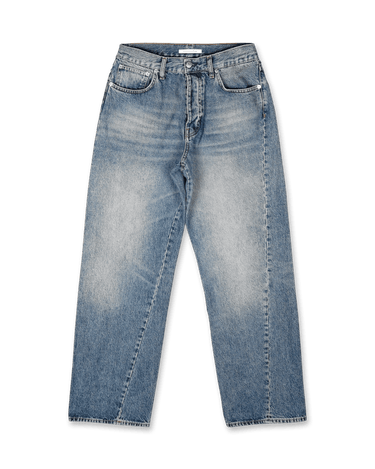 SUNFLOWER's Wide Twist jeans are a stylish embodiment of modern fashion with a vintage touch. Crafted from 3/1 twill indigo denim, these jeans showcase a unique vintage effect with carefully placed abrasions on pocket edges, seams, thighs, and seat. The inclusion of metal denim trim adds a touch of rugged elegance. Some versions are made from 100% organic GOTS-certified cotton, ensuring sustainability. Ideal for elevating everyday ensembles, these jeans blend classic aesthetics with contemporary design sensibilities.
