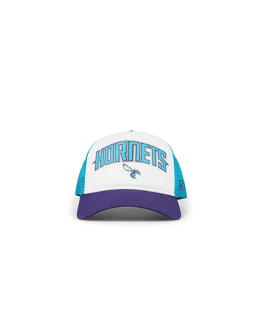 The New Era Charlotte Hornets Retro Trucker is a stylish addition for fans and fashion enthusiasts alike. Crafted from a durable cotton and polyester blend, this trucker cap offers excellent breathability and comfort. Its retro design pays homage to the iconic Charlotte Hornets, making it a statement piece in any casual outfit. The classic trucker silhouette and mesh back panel add a timeless touch, perfect for elevating your streetwear ensemble with a nod to vintage sports aesthetics.