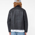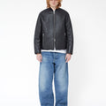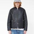 The Shearling Bomber Jacket by MKI Miyuki Zoku is an elegant addition to your winter wardrobe. Crafted from 100% New Zealand lamb leather with a heavy bubble texture, it offers both style and comfort. The jacket features 100% cow nappa flat piping and a bonded faux fur lining for added warmth. Highlighted by #8 silver zippers and hardware, its ribbed bomber collar and tonal embroidered logo on the back add subtle sophistication. This piece is perfect for those seeking a stylish yet practical outerwear option.