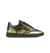 MM6 Leather Sneakers redefine urban elegance with their sleek design and luxurious materials. Crafted from premium quality leather, these sneakers offer a refined touch to any ensemble. The black and gold tones provide a sophisticated yet bold aesthetic, making them an ideal choice for fashion-forward individuals. With a focus on craftsmanship and style, these sneakers are perfect for elevating your casual wardrobe, seamlessly blending comfort and chic design for everyday wear.