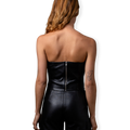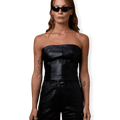 Experience chic elegance with the Oval Square Reflection Leather Top, a stylish strapless silhouette in 100% soft leather.
