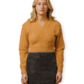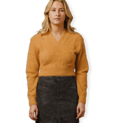 Long Hair V-Neck Knit Crop Top