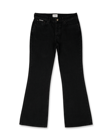 - Composition: Shell: 100% cotton, 5 pocket construction, High rise, Bootcut fit, Tonal stitching, Logo embroidery on back pocket, Button fly, Branded metal trims