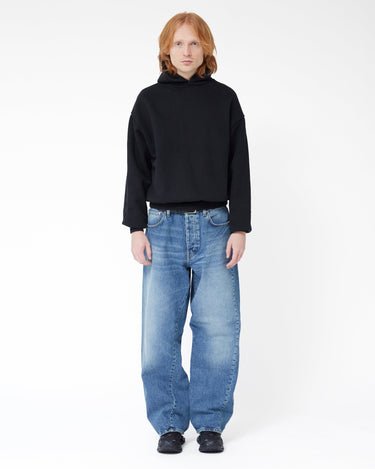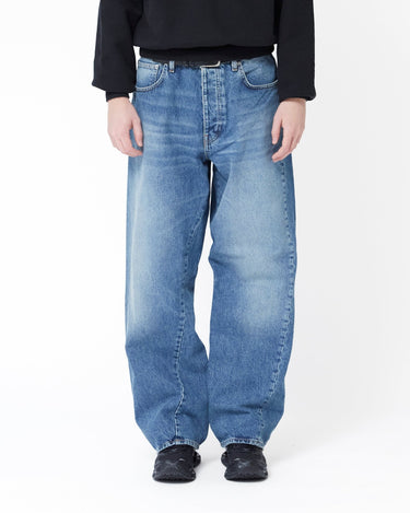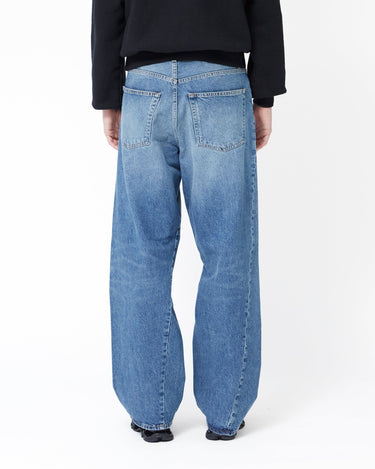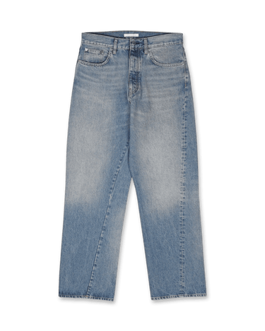 Introducing the SUNFLOWER "Wide Twist" jeans, a stylish staple crafted from 100% premium cotton denim, offering a timeless appeal with its mid-blue vintage wash. The jeans feature twisted side seams and handmade abrasion detailing, adding a unique touch to the classic five-pocket design. Recycled metal trimmings highlight SUNFLOWER's commitment to sustainability. Perfectly blending fashion and eco-conscious design, these jeans elevate any wardrobe with their understated yet distinctive aesthetic.
